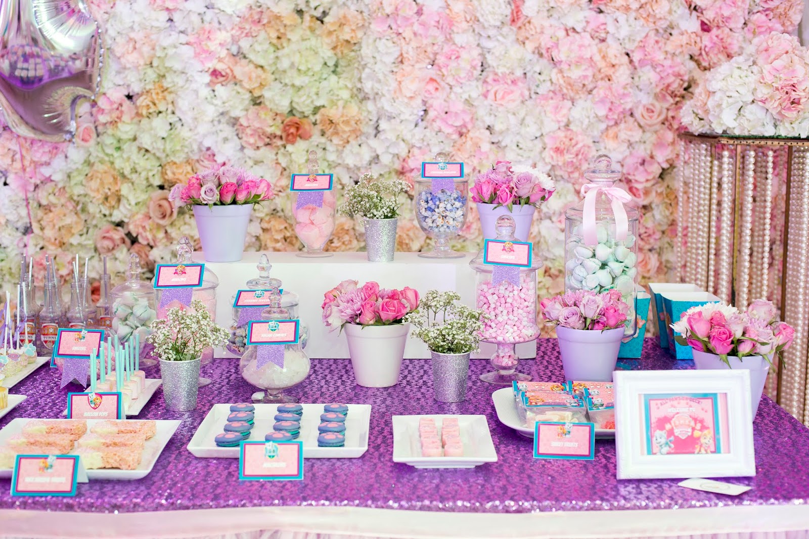 Paw Patrol went full on girly with this gorgeously girly party at the Oyster Box. The elegant Pearl room was the perfect venue, with it's clean whites and mirrored walls. We used just the right amount of sequin shimmer as well as glitter elements, and soft florals for a look of any little girls (and her Mom's) dreams.
